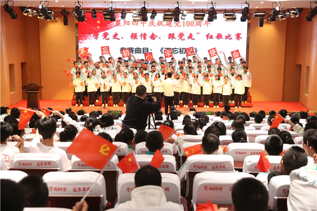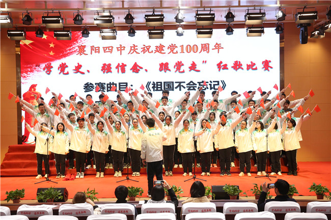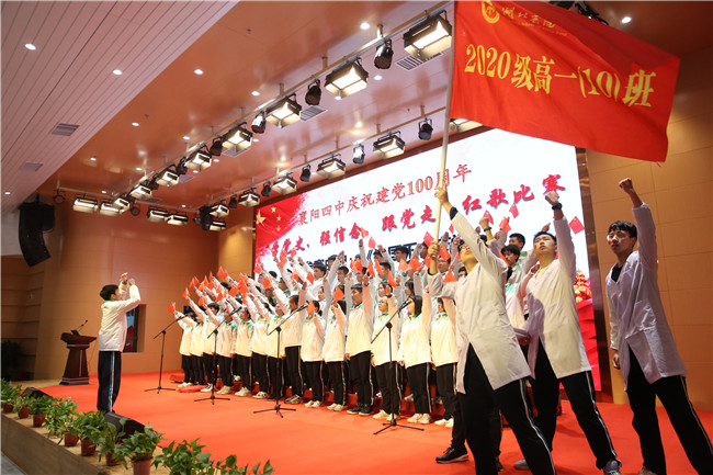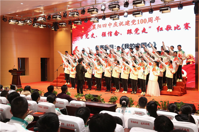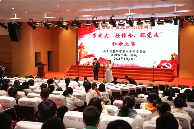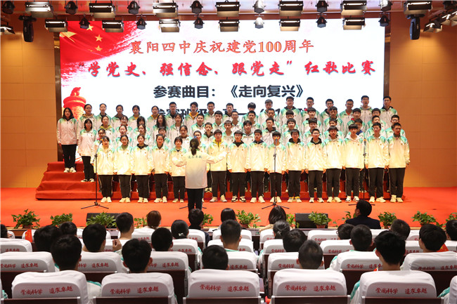 4月9日晚6:40,四中至美楼学术报告厅座无虚席,迎来了热血沸腾的激动时刻。在初赛中脱颖而出的高一年级的八个班级,欢聚一堂,共同参加襄阳四中庆祝建党100周年“学党史,强信念,跟党走”红歌合唱比赛决赛。