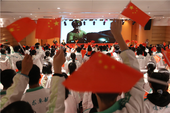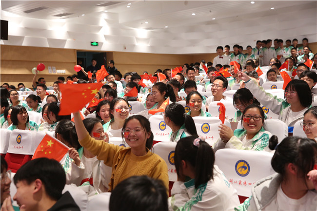 参赛学子们精神饱满,脸上贴着国旗,手中挥舞着国旗,口中唱出对党、对祖国、对人民的忠诚热爱。《我的中国心》《精忠报国》《走向复兴》《不忘初心》……嘹亮的歌声让大家心潮澎湃,思绪万千。大家仿佛又回到了那个激情燃烧的岁月,中华儿女在中国共产党的领导下,驱除鞑虏,保家卫国,为实现中华民族伟大复兴而不断奋斗。